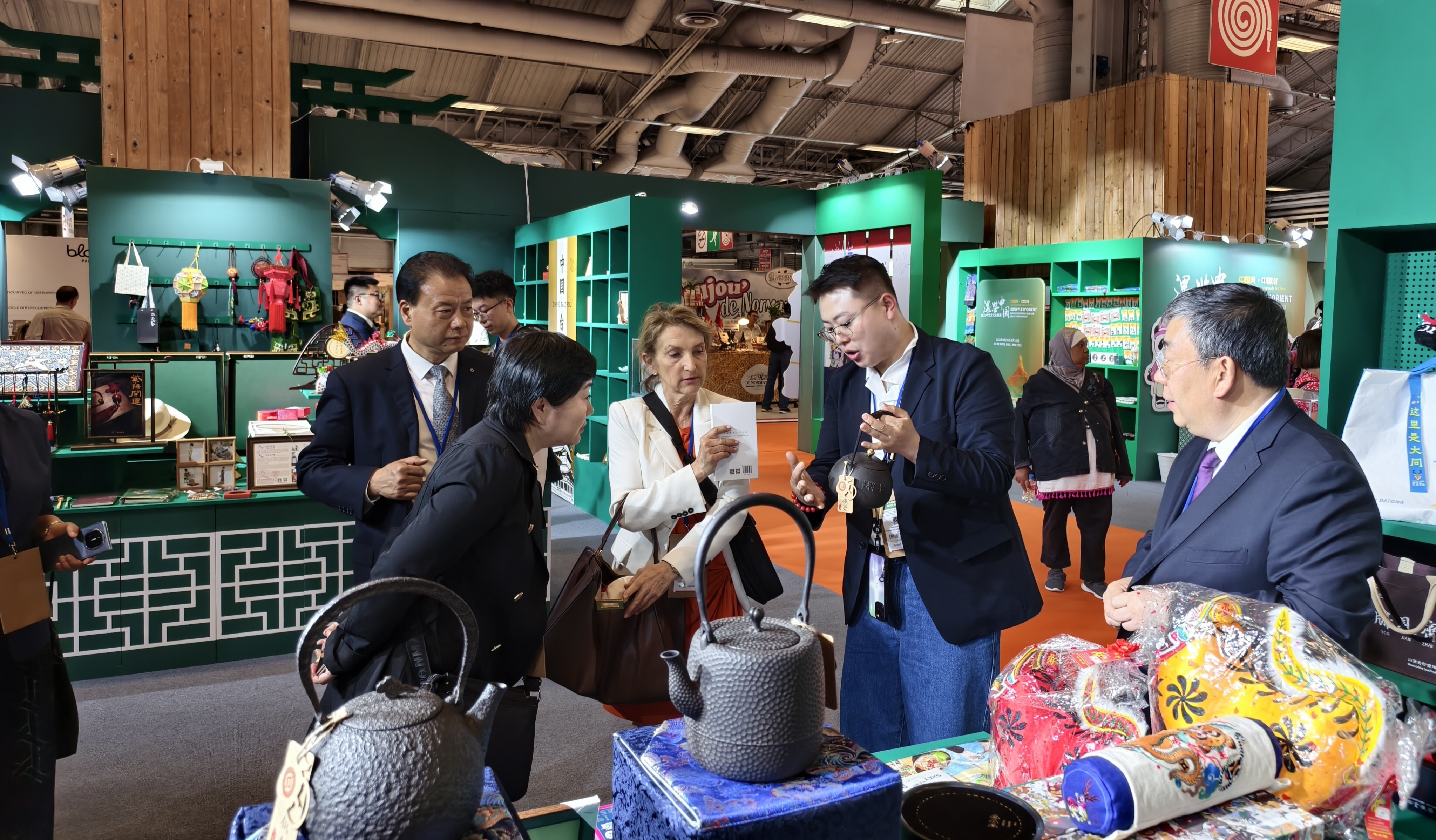 中新網(wǎng)5月2日電 當?shù)?025年4月30日,法國巴黎國際博覽會在巴黎凡爾賽門展覽中心開幕,同時又一次在塞納河畔掀起一股中國風。三晉老字號晉藝坊鐵壺亮相法國巴黎國際博覽會,再次登上國際舞臺。在巴黎凡爾賽門展覽館中,晉藝坊古樸典雅的鐵壺無聲地訴說著中國厚重的茶藝文化,展現(xiàn)著山西晉城光輝燦爛的冶鑄歷史。