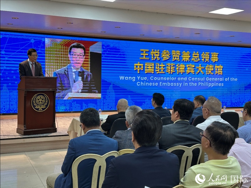 中國駐菲使館參贊兼總領(lǐng)事王悅介紹使館保護(hù)華僑華人安全所做工作。人民網(wǎng)記者 樊帆攝