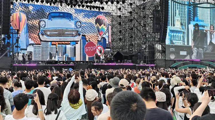 “整個電競的比賽過程看得有點上頭,看著選手們默契配合打出極限操作時,我嗓子都喊啞了,這現(xiàn)場的刺激勁兒跟看直播完全不一樣!”來自長沙的電競愛好者小杰開心地說,這邊電競比賽剛結束,那邊音樂節(jié)就炸場,老有意思了!