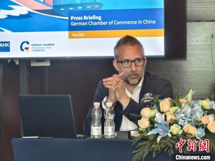 5月7日,中國(guó)德國(guó)商會(huì)華北及東北地區(qū)執(zhí)行董事兼董事會(huì)成員歐陽(yáng)利文(Oliver Oehms)回答記者提問(wèn)。 中新社記者 蘇婧欣 攝