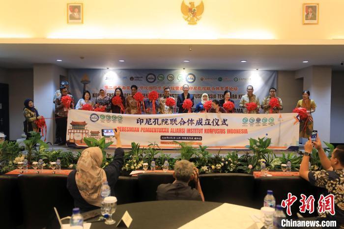 圖為與會(huì)嘉賓為印尼孔子學(xué)院聯(lián)合體成立剪彩。記者 李志全 攝