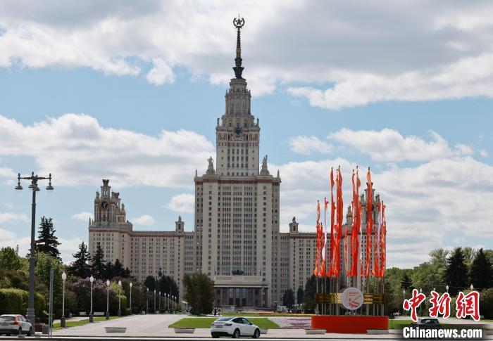 當?shù)貢r間5月6日,莫斯科大學景色宜人?!≈行律缬浾?盛佳鵬 攝