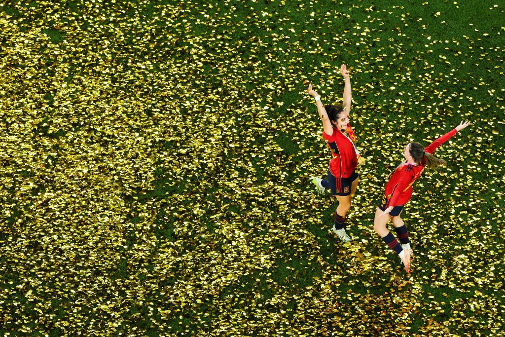 圖為西班牙隊球員在2023年國際足聯(lián)女足世界杯決賽賽后慶祝奪冠。新華社記者 白雪飛 攝