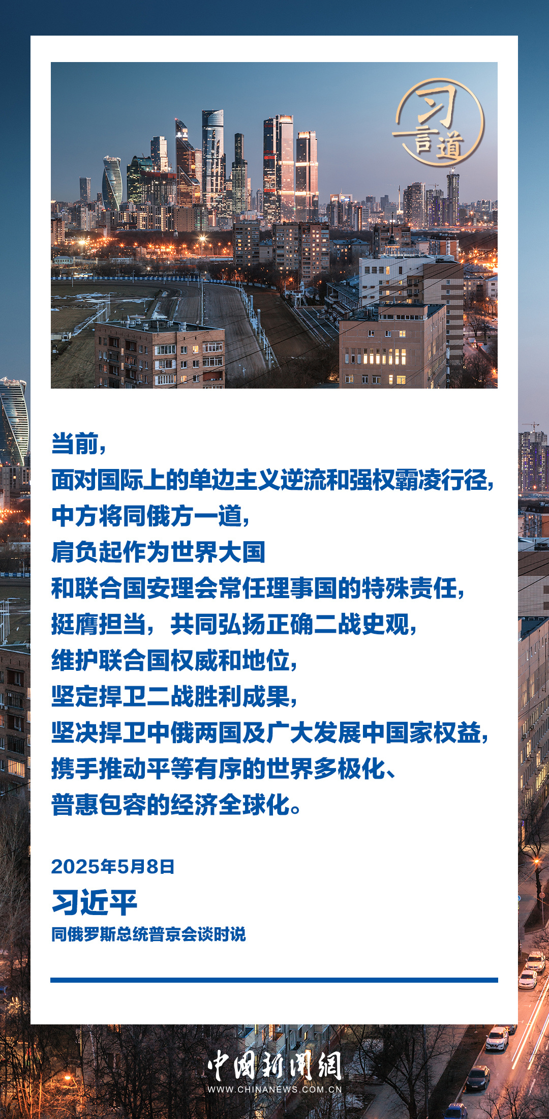 當(dāng)?shù)貢r(shí)間5月8日,俄羅斯總統(tǒng)普京同中國(guó)國(guó)家主席習(xí)近平在莫斯科克里姆林宮舉行會(huì)談。習(xí)近平指出——