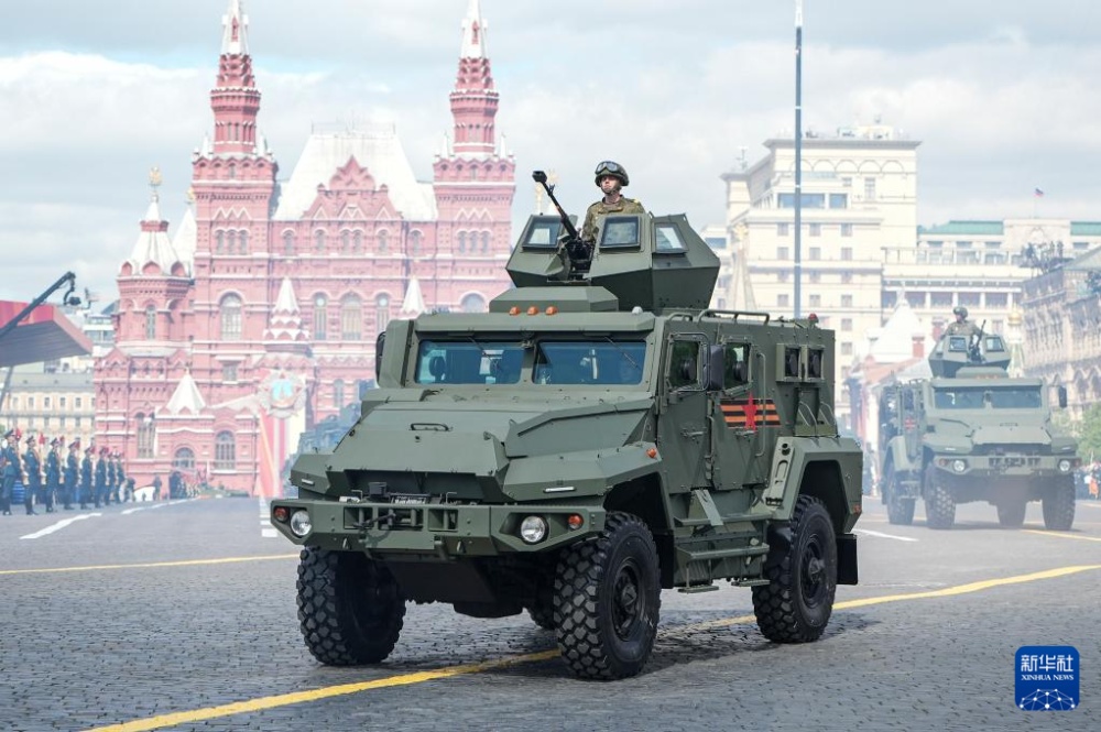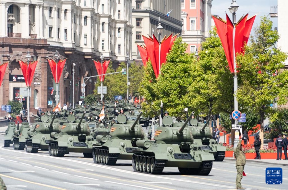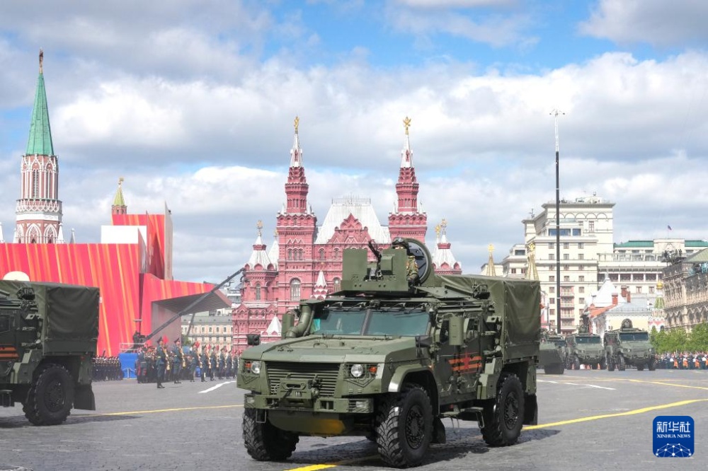5月9日,在俄羅斯首都莫斯科,軍用車輛參加紀(jì)念蘇聯(lián)偉大衛(wèi)國(guó)戰(zhàn)爭(zhēng)勝利80周年閱兵式。