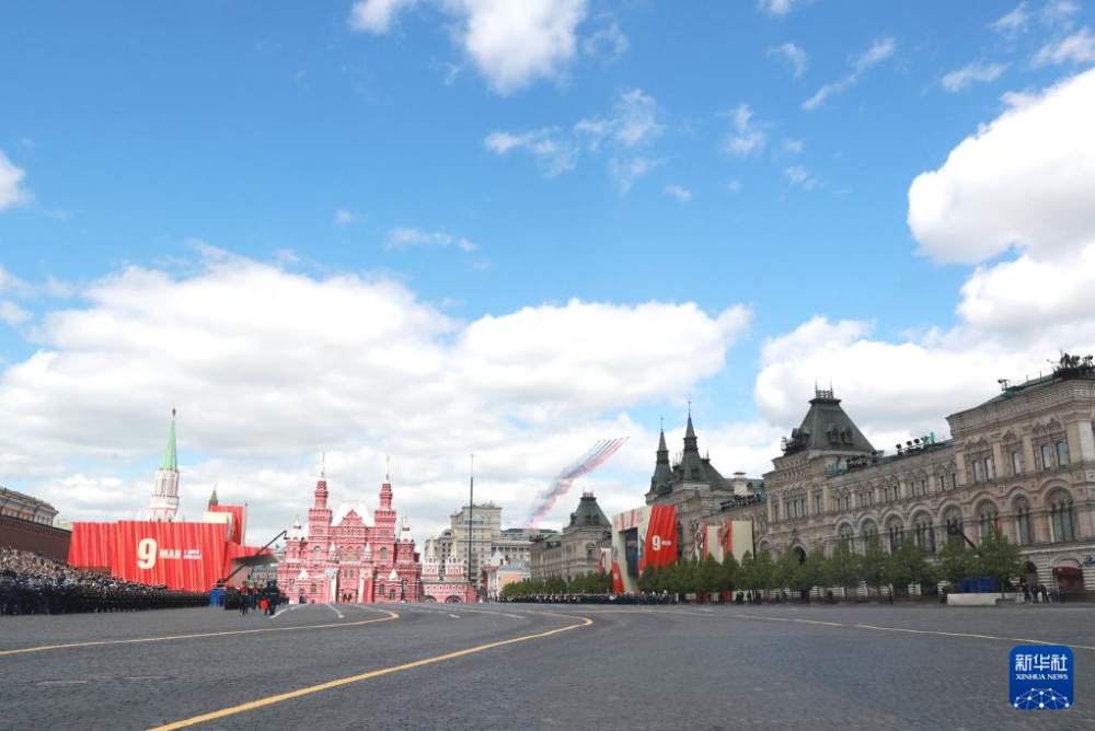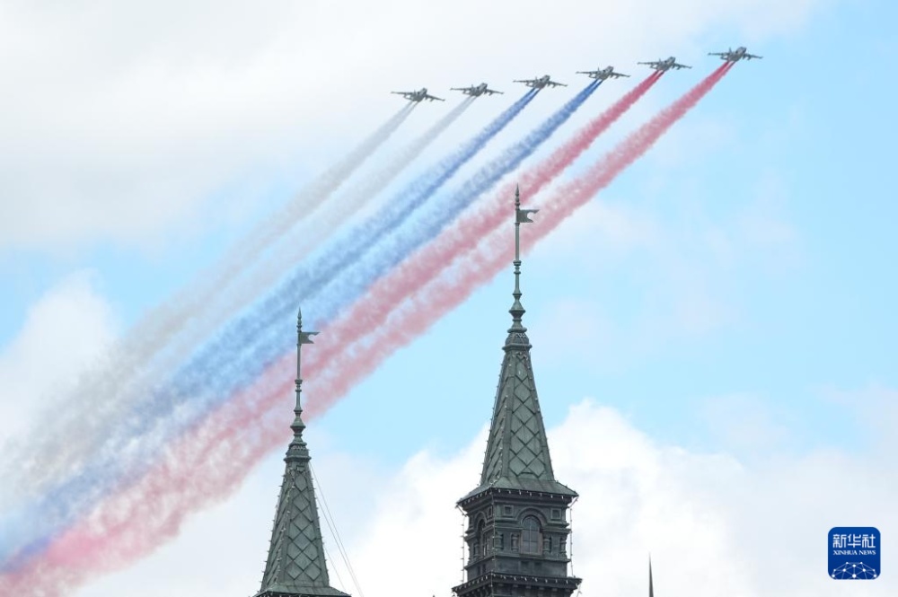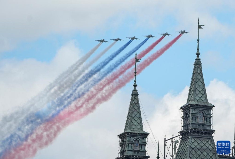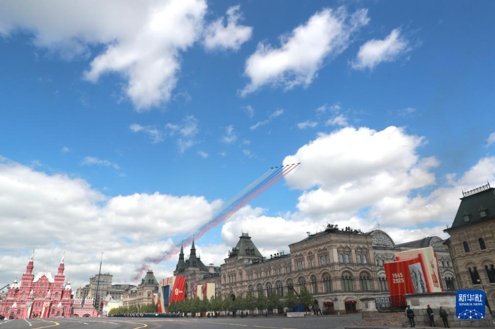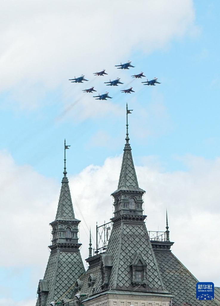 5月9日,在俄羅斯首都莫斯科,戰(zhàn)機(jī)編隊(duì)參加紀(jì)念蘇聯(lián)偉大衛(wèi)國(guó)戰(zhàn)爭(zhēng)勝利80周年閱兵式。
