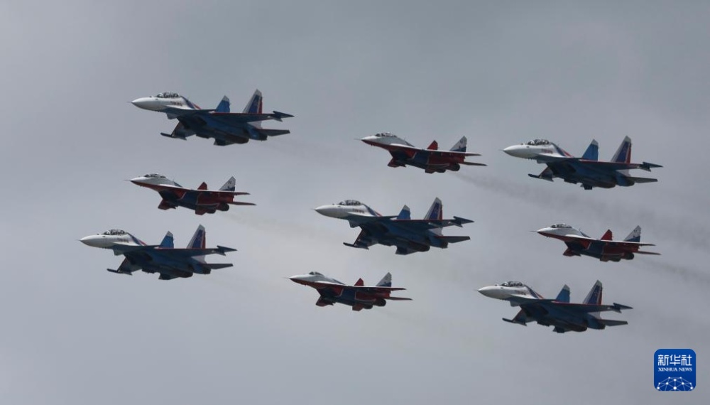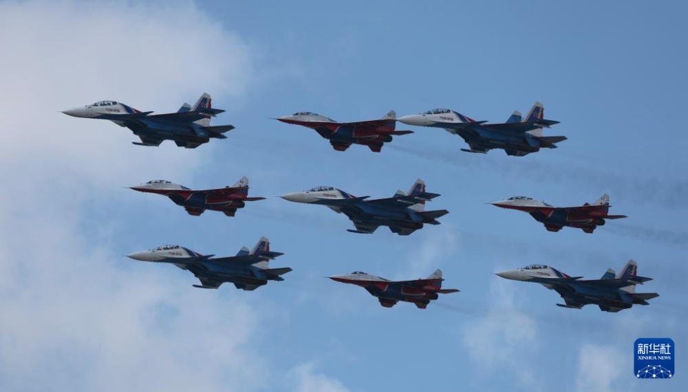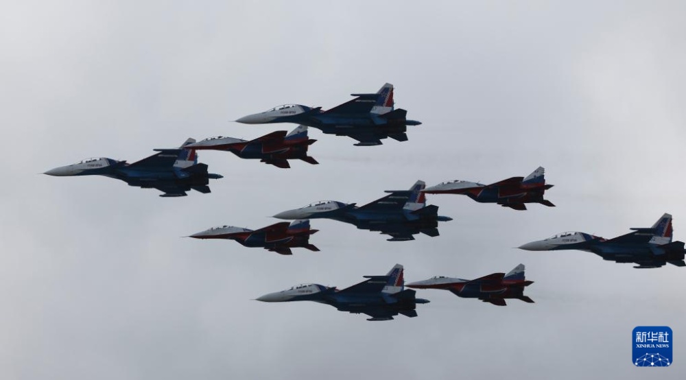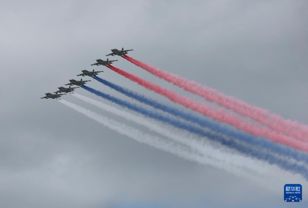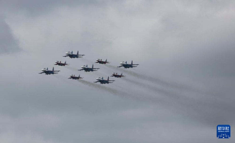 5月9日,在俄羅斯首都莫斯科,戰(zhàn)機(jī)編隊(duì)參加紀(jì)念蘇聯(lián)偉大衛(wèi)國(guó)戰(zhàn)爭(zhēng)勝利80周年閱兵式。