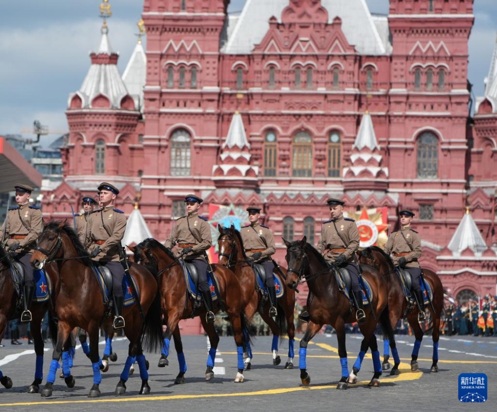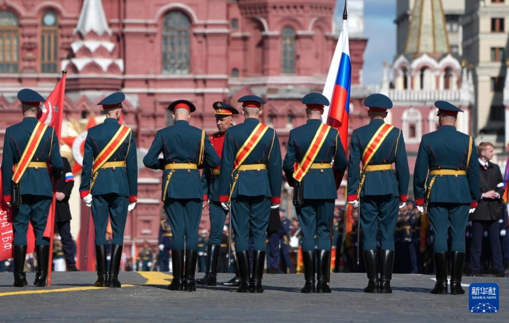 5月9日,在俄羅斯首都莫斯科,儀仗隊(duì)準(zhǔn)備參加紀(jì)念蘇聯(lián)偉大衛(wèi)國(guó)戰(zhàn)爭(zhēng)勝利80周年閱兵式。