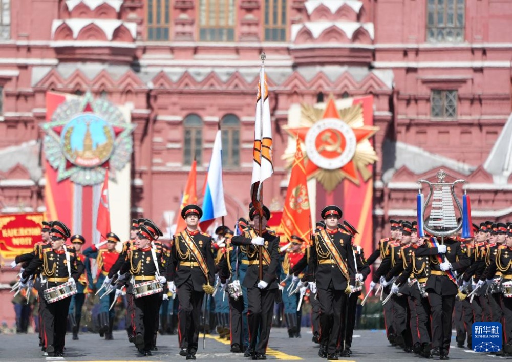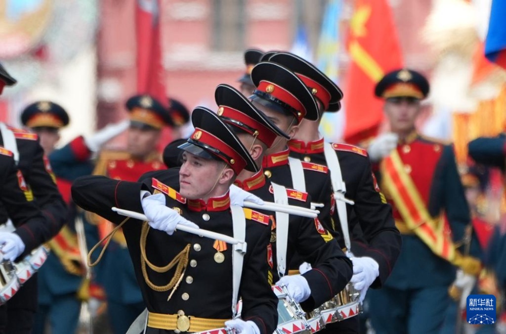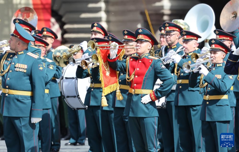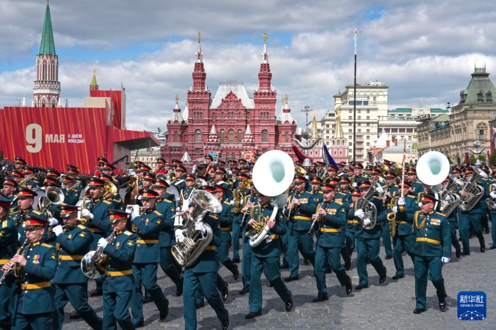 5月9日,在俄羅斯首都莫斯科,軍樂隊(duì)參加紀(jì)念蘇聯(lián)偉大衛(wèi)國(guó)戰(zhàn)爭(zhēng)勝利80周年閱兵式。
