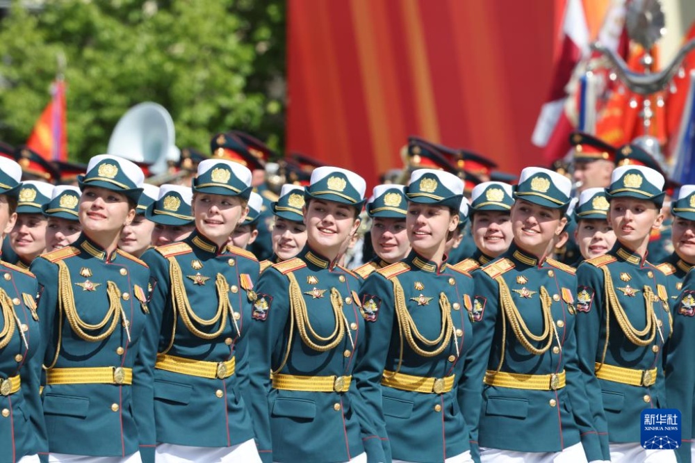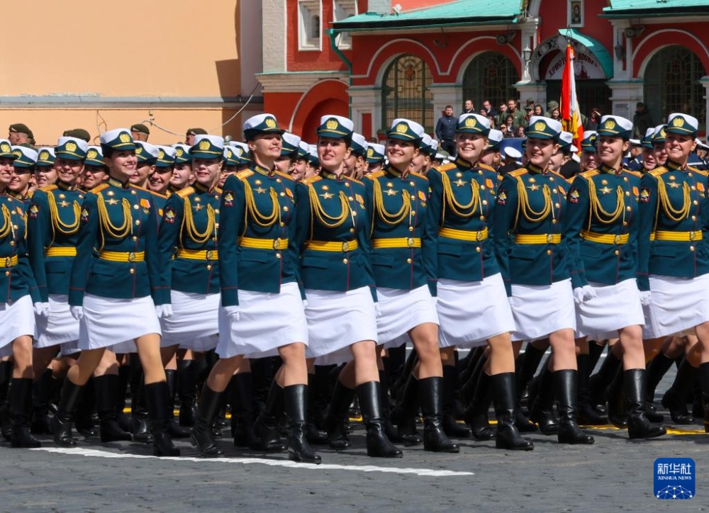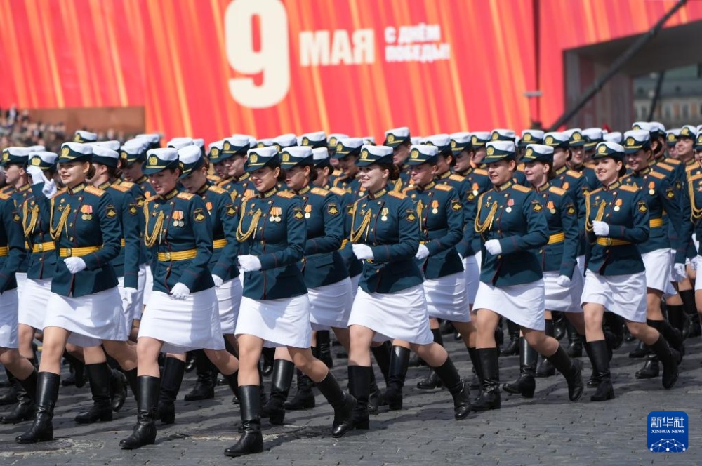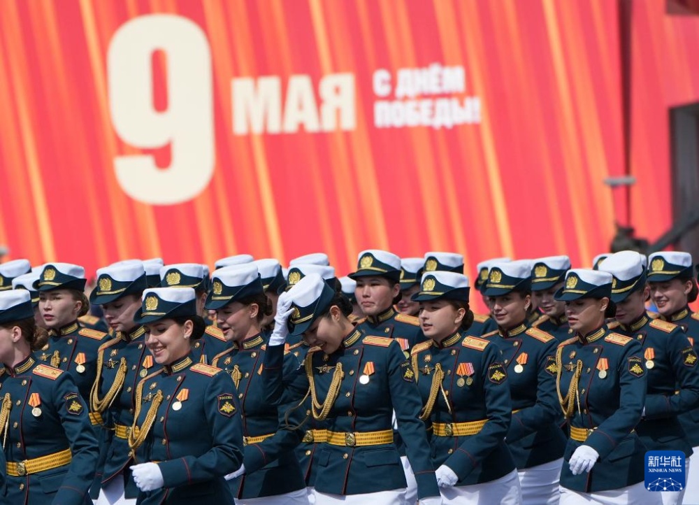 5月9日,在俄羅斯首都莫斯科,女兵參加紀(jì)念蘇聯(lián)偉大衛(wèi)國(guó)戰(zhàn)爭(zhēng)勝利80周年閱兵式。