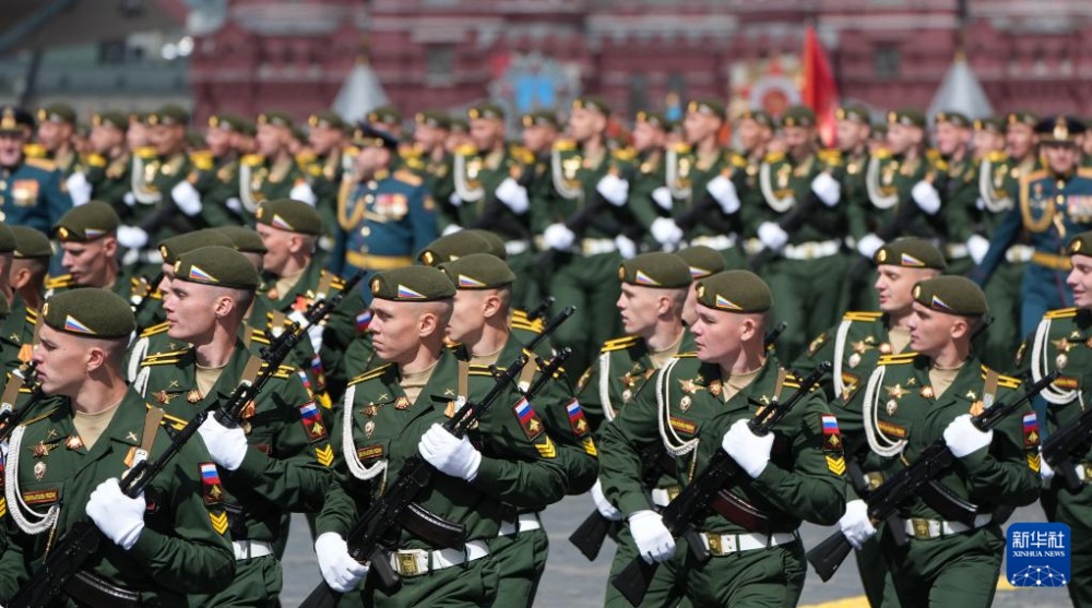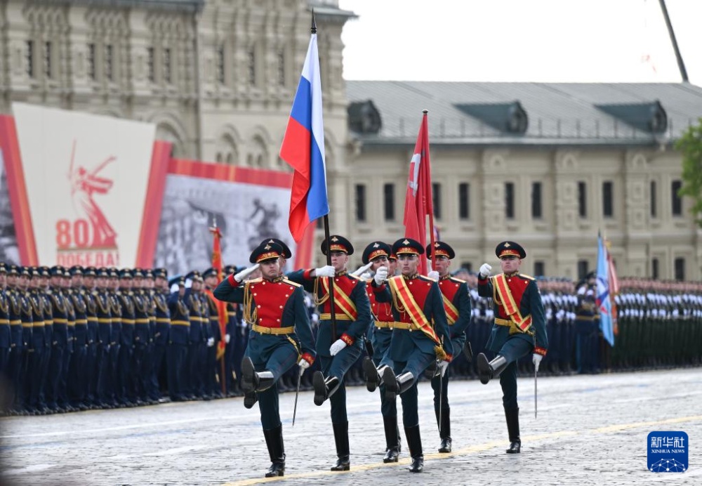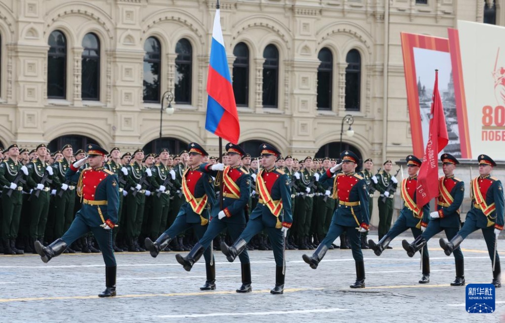 5月9日,在俄羅斯首都莫斯科,軍人參加紀(jì)念蘇聯(lián)偉大衛(wèi)國(guó)戰(zhàn)爭(zhēng)勝利80周年閱兵式。