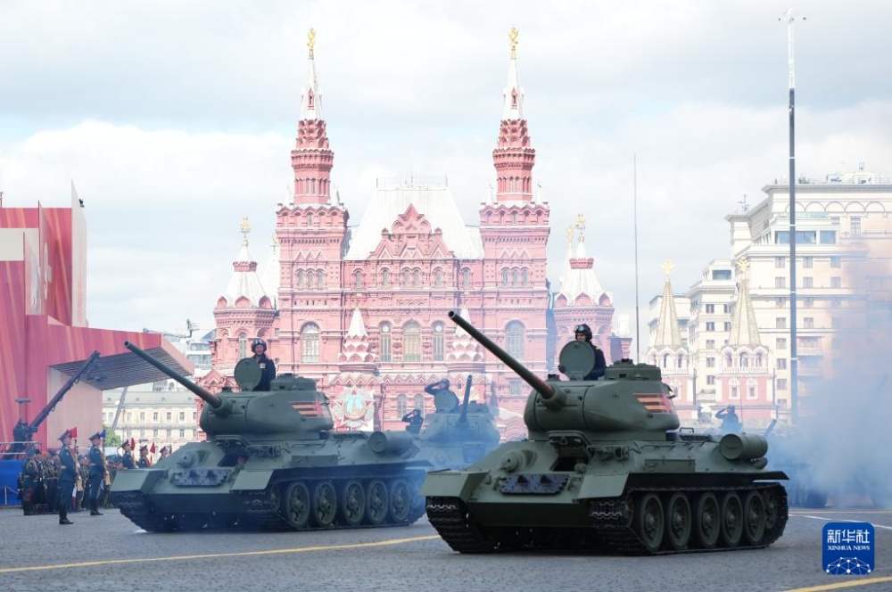 5月9日,在俄羅斯首都莫斯科,T-34坦克參加紀(jì)念蘇聯(lián)偉大衛(wèi)國(guó)戰(zhàn)爭(zhēng)勝利80周年閱兵式。