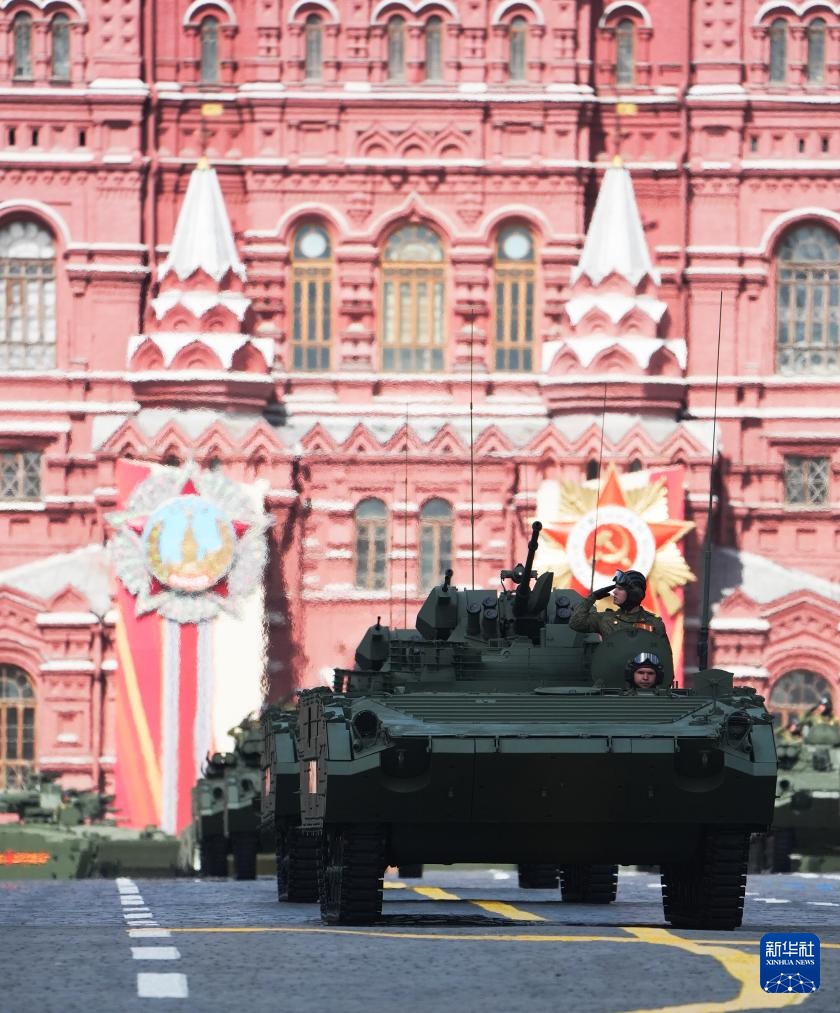5月9日,在俄羅斯首都莫斯科,步兵戰(zhàn)車參加紀(jì)念蘇聯(lián)偉大衛(wèi)國(guó)戰(zhàn)爭(zhēng)勝利80周年閱兵式。