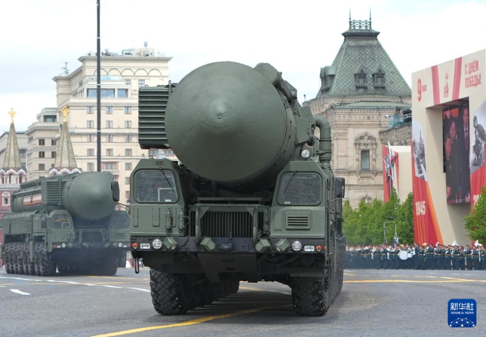 這是5月9日在俄羅斯首都莫斯科舉行的紀(jì)念蘇聯(lián)偉大衛(wèi)國(guó)戰(zhàn)爭(zhēng)勝利80周年閱兵式上拍攝的洲際彈道導(dǎo)彈。