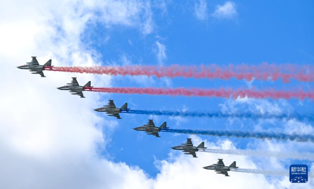 5月9日,在俄羅斯首都莫斯科,參加紀(jì)念蘇聯(lián)偉大衛(wèi)國(guó)戰(zhàn)爭(zhēng)勝利80周年閱兵式的戰(zhàn)機(jī)編隊(duì)拉煙飛行。