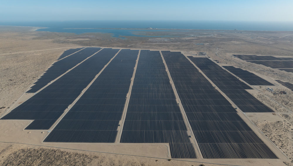 這是2025年4月2日在墨西哥佩尼亞斯科港附近拍攝的中國能源建設集團承建的佩尼亞斯科港光伏項目二期工程(無人機照片)。新華社記者 李夢馨 攝