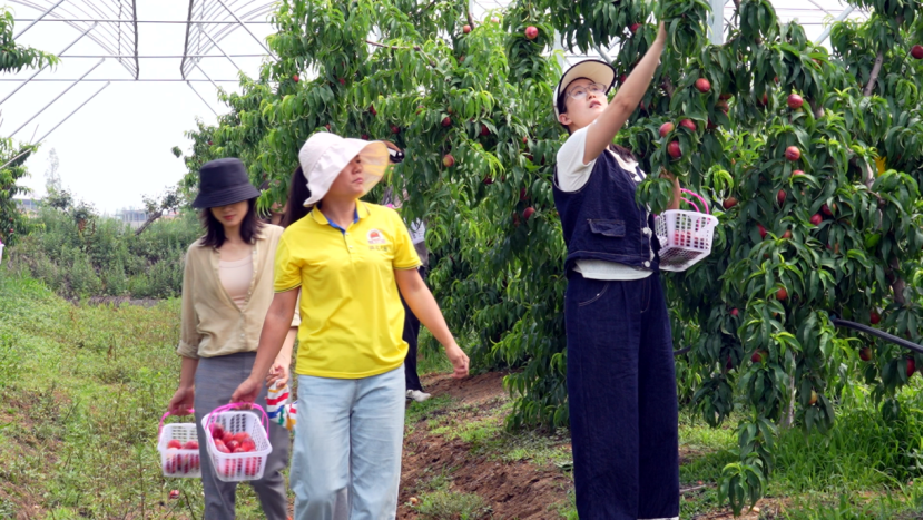 “到了摘桃子的季節(jié),去年我也來過,今年我們邊摘邊吃,桃子非常脆甜多汁,小孩也愛吃。我們邊摘邊玩很有樂趣?!毙⒏杏慰婉R蓮說。
