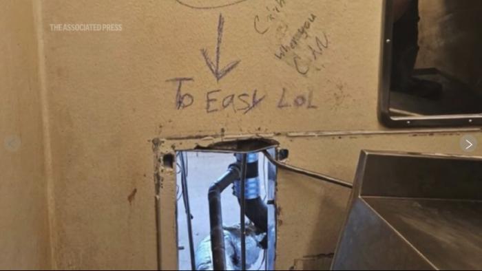 《華盛頓郵報》指出,警方公布的所謂逃跑路線照片顯示,一間牢房的金屬馬桶被推到一邊,露出了一個洞口。洞口上方還留有涂鴉,例如“太容易了,哈哈”和“有機會再來抓我們”。