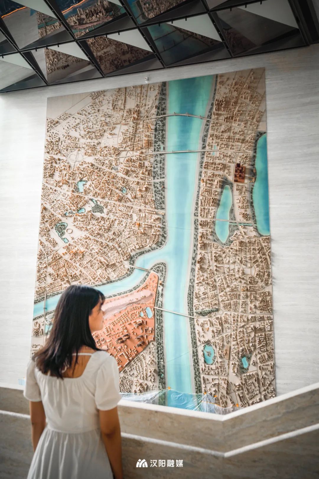 進入「武漢之眼」,迎面就是12米高的武漢3D鳥瞰模型撲入眼中,兩江三鎮(zhèn)的輪廓展開,不由感嘆武漢好大好美,好想帶上心愛的TA,在漢陽選一個地方安居未來的家。