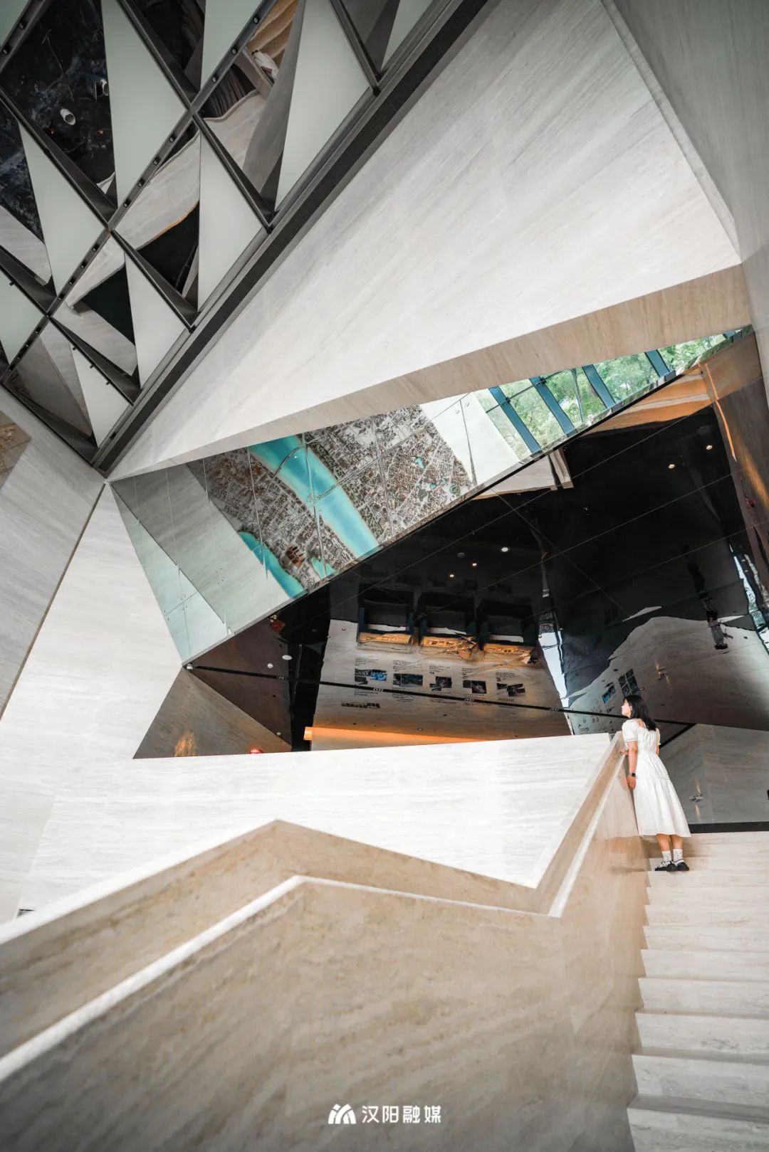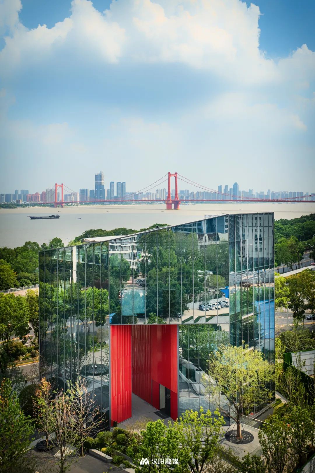 巨大紅框建筑面朝長江,矗立在漢陽古城文化軸的端點,眼前是“唯見長江天際流”的盛景,背后是超1400年歷史的顯正街延伸而去。