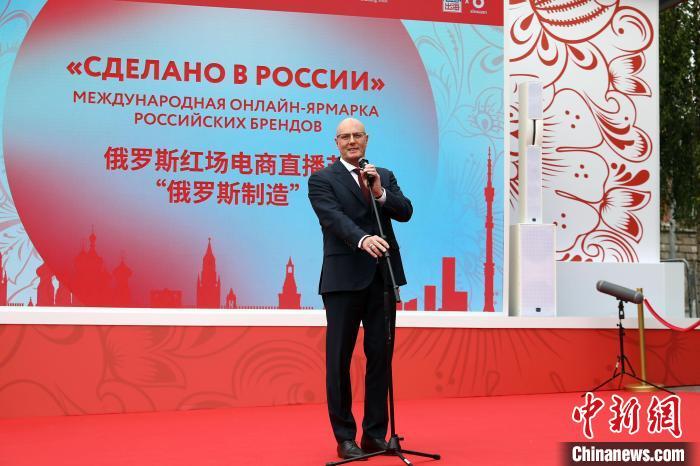當(dāng)?shù)貢r間5月17日,俄羅斯“紅場電商直播節(jié)”在莫斯科紅場旁的扎里亞季耶公園舉行。圖為俄羅斯政府副總理切爾內(nèi)申科出席活動啟動儀式并致辭。中新社記者 田冰 攝