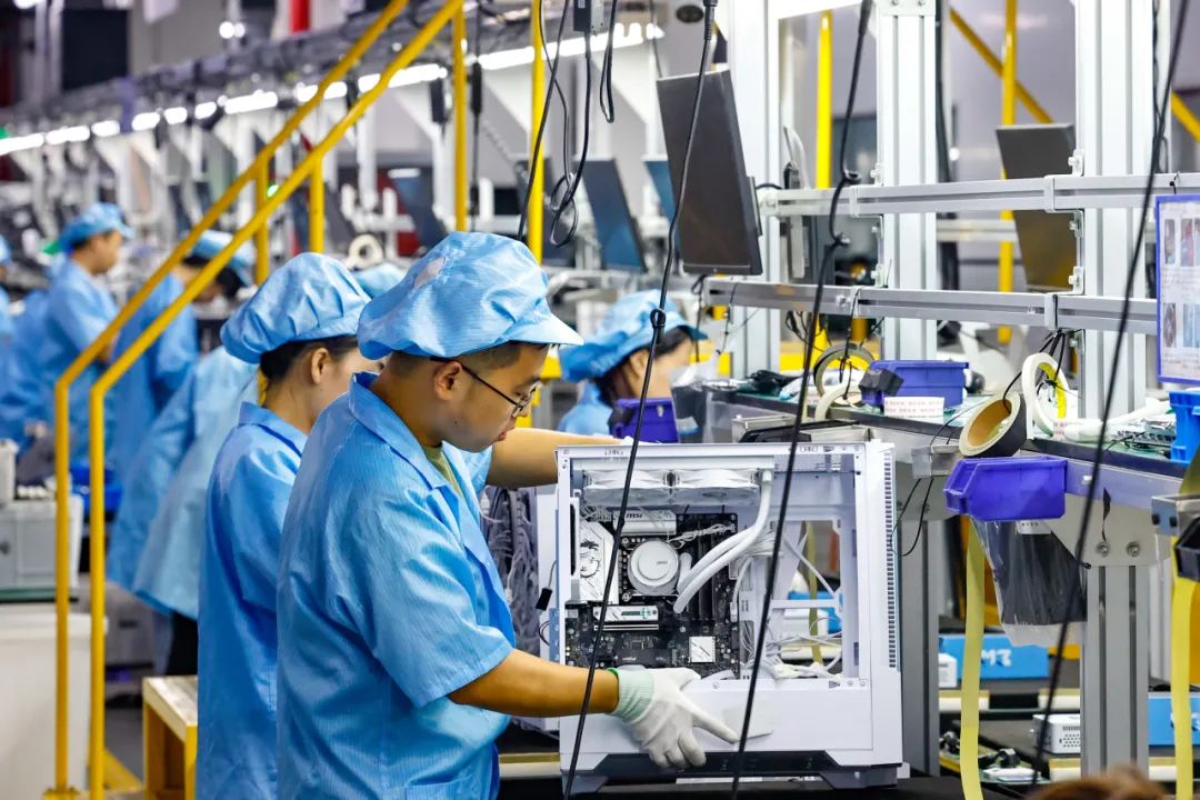 “星閃是新一代近距離無線連接技術(shù),傳輸速度和抗干擾性遠超藍牙和Wi-Fi?!迸噬萍贾饕撠?zé)人介紹,攀升科技實現(xiàn)柔性化生產(chǎn),讓生產(chǎn)線上每臺電腦都不一樣,顧客在網(wǎng)上下單,基本實現(xiàn)24小時內(nèi)發(fā)貨,完全滿足用戶大規(guī)模個性化定制。