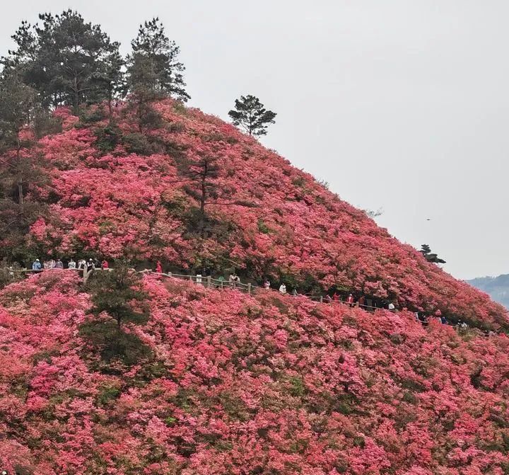 游客在木蘭云霧山觀賞杜鵑花。梁建強 攝