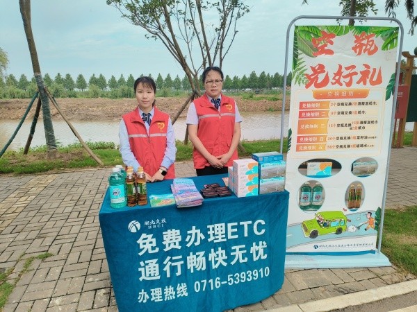 志愿者在美食區(qū)開展“空瓶兌好禮”行動,現(xiàn)場回收飲料瓶200余個,發(fā)放酒精濕紙巾、紙巾盒等物資100余件。同步開展“文明出行隨手拍”路域環(huán)境宣傳,通過展板展示高速公路白色污染治理成效,以“互動式科普+沉浸式體驗(yàn)”引導(dǎo)公眾成為“最美楚道”的守護(hù)者。