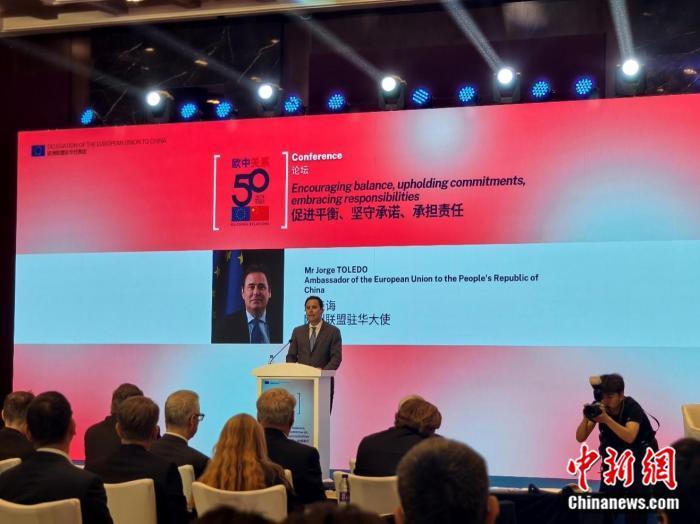 2025年是中國(guó)與歐盟正式建立外交關(guān)系50周年。5月14日,歐盟駐華代表團(tuán)在北京舉辦以“促進(jìn)平衡、堅(jiān)守承諾、承擔(dān)責(zé)任”為主題的中歐關(guān)系50周年紀(jì)念論壇。歐盟駐華大使庹?qǐng)蛘d、中國(guó)外交部歐洲司司長(zhǎng)李健、法國(guó)前總理巴尼耶等中歐各界代表出席論壇。來(lái)自中歐雙方的25位知名學(xué)者與公共領(lǐng)域代表圍繞雙邊經(jīng)貿(mào)、地緣政治、綠色發(fā)展等議題展開(kāi)深入交流與討論。
