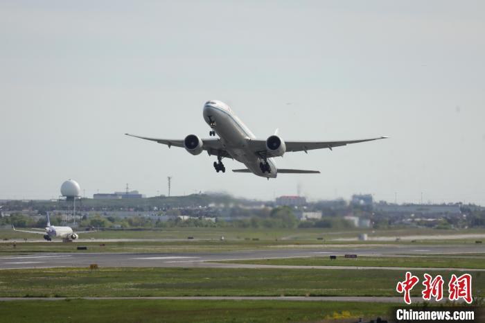 當(dāng)?shù)貢r(shí)間5月20日,國(guó)航CA994航班班機(jī)從多倫多皮爾遜國(guó)際機(jī)場(chǎng)起飛,前往北京?!≈行律缬浾?余瑞冬 攝