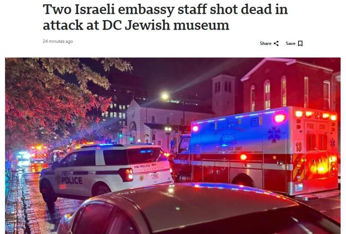 據(jù)報(bào)道,槍擊事件發(fā)生在當(dāng)?shù)貢r(shí)間21日21時(shí)許,死者為一男一女,他們?cè)趶莫q太博物館的一個(gè)活動(dòng)離開時(shí)被槍殺,當(dāng)時(shí)有多名以色列大使館員工參加了博物館的活動(dòng)。