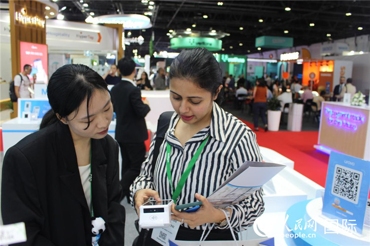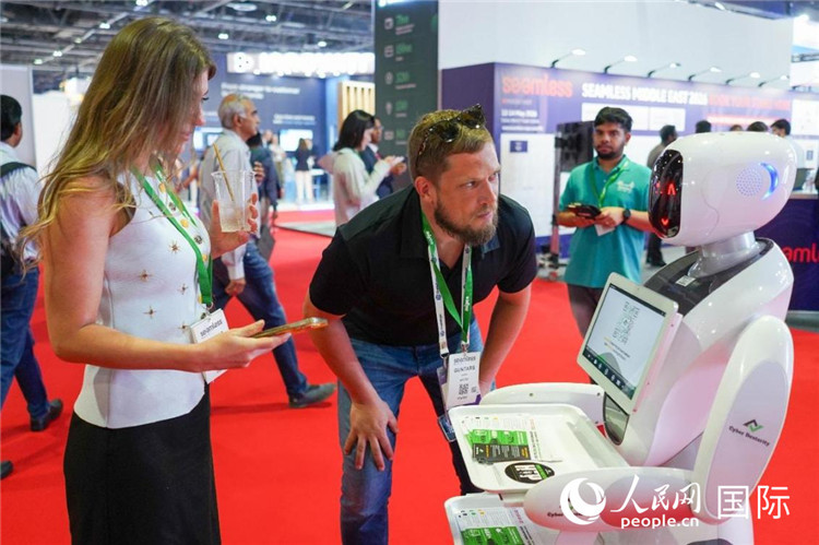 會(huì)上展示的電子支付機(jī)器人。人民網(wǎng) 塔里克·易卜拉欣攝