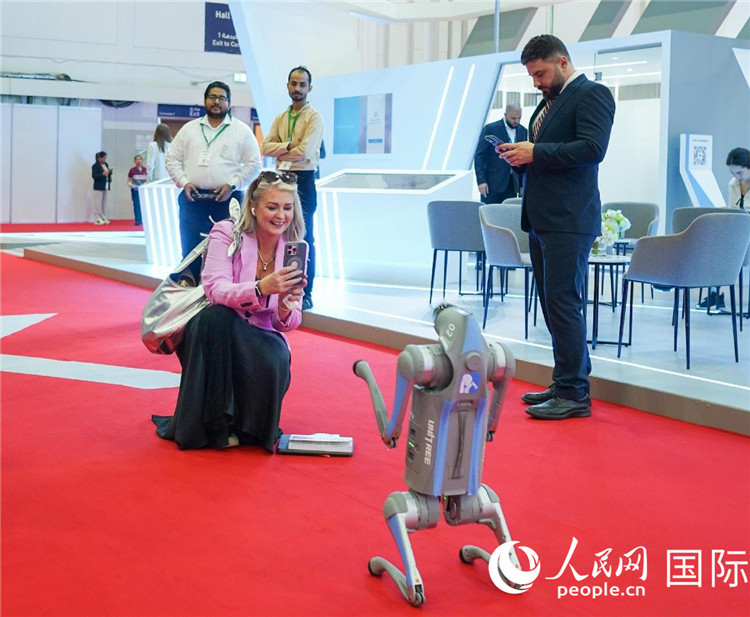 與會(huì)嘉賓被中企機(jī)器人吸引。人民網(wǎng) 塔里克·易卜拉欣攝