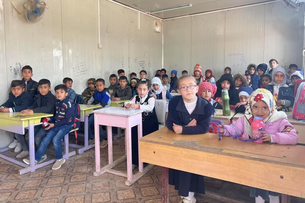 伊拉克卡爾巴拉省學(xué)生在簡(jiǎn)易板房?jī)?nèi)上課。中國(guó)電建供圖