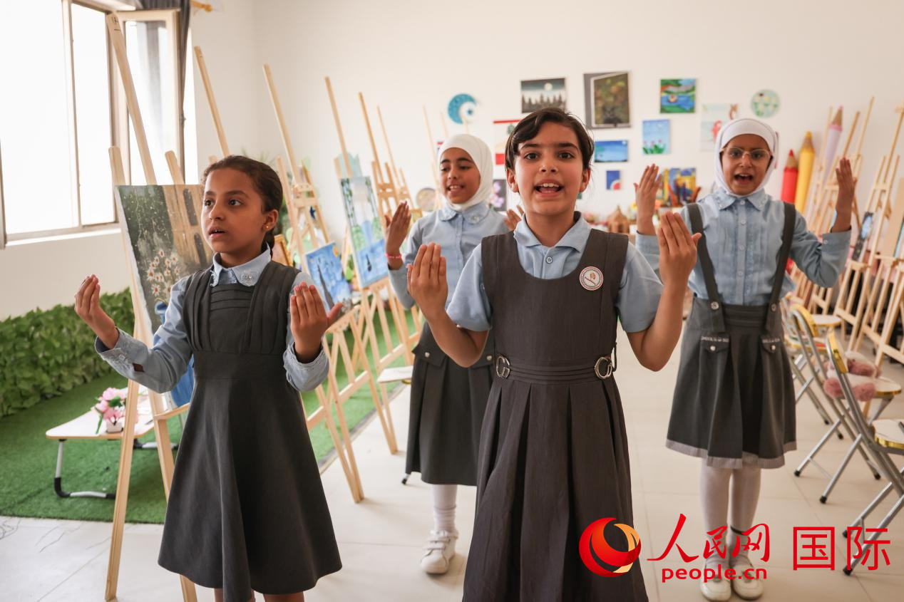 阿爾穆塔·阿里卡特國(guó)際學(xué)校的學(xué)生在展示課間活動(dòng)。人民網(wǎng)記者 薛丹攝