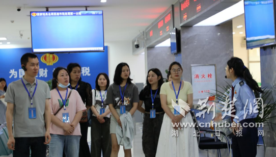“稅務(wù)體驗師”參觀辦稅服務(wù)廳。通訊員供圖