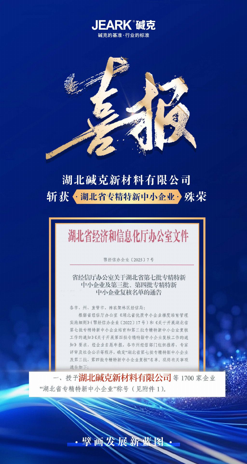近日,湖北省經(jīng)濟(jì)和信息化廳公布第七批“專精特新中小企業(yè)”名單,湖北堿克新材料有限公司(以下簡稱“堿克”)成功入選。這一榮譽不僅是對堿克在膏狀瓷磚背膠領(lǐng)域持續(xù)深耕、堅持技術(shù)創(chuàng)新的權(quán)威肯定,也標(biāo)志著其綜合實力邁上新臺階,成為建材輔材行業(yè)中高質(zhì)量發(fā)展的典范。