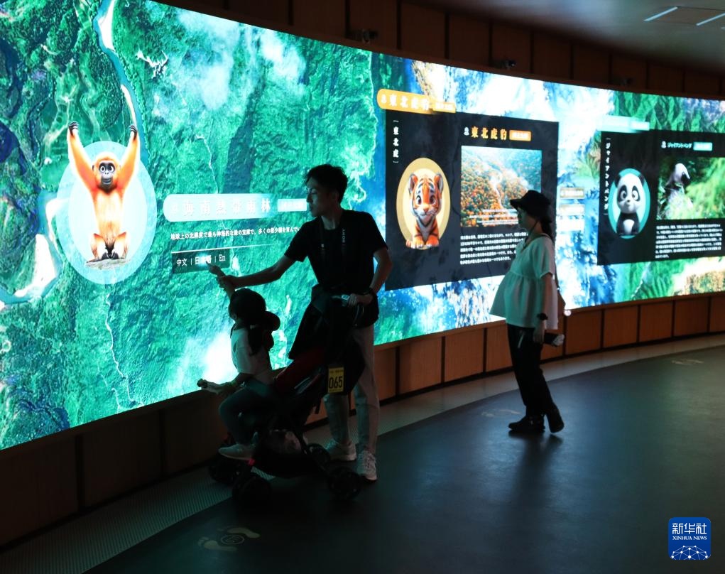 “花瓣”旁的弧形交互屏上介紹著三江源、武夷山、海南熱帶雨林等中國國家公園在野生動(dòng)植物保護(hù)方面取得的積極成效。朱鹮、林麝等國家重點(diǎn)保護(hù)野生動(dòng)物的體態(tài)特征、生存技能、分布情況等文字說明,公園面積、品種數(shù)量等直觀數(shù)據(jù)吸引各國游客久久佇立。竹下說,中國的野生動(dòng)植物種類繁多、超乎想象,中國館的精彩展示讓他大開眼界。