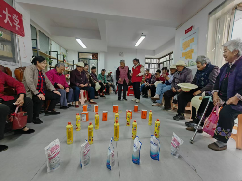 套圈活動(dòng)在大家的歡呼聲中展開。場(chǎng)地中央,抽紙、洗衣液、洗潔精、石雕娃娃、艾草香囊、粽子等錯(cuò)落擺放。陳大爺率先挑戰(zhàn),他手持竹圈,踮腳瞄準(zhǔn)時(shí)白發(fā)微微顫動(dòng),"啪"的一聲,套圈穩(wěn)穩(wěn)落在洗潔精上,引得圍觀老人齊聲喝彩。張阿姨調(diào)整呼吸,將套圈輕輕拋出,卻見它在空中劃出弧線,不偏不倚套住了抽紙,驚呼聲中她笑著說:“沾了端午節(jié)的福氣,今天手氣格外靈!”此起彼伏的歡笑聲里,老人們時(shí)而屏息凝神,時(shí)而鼓掌歡呼,連院角的貓咪都蹲坐著看入了神。