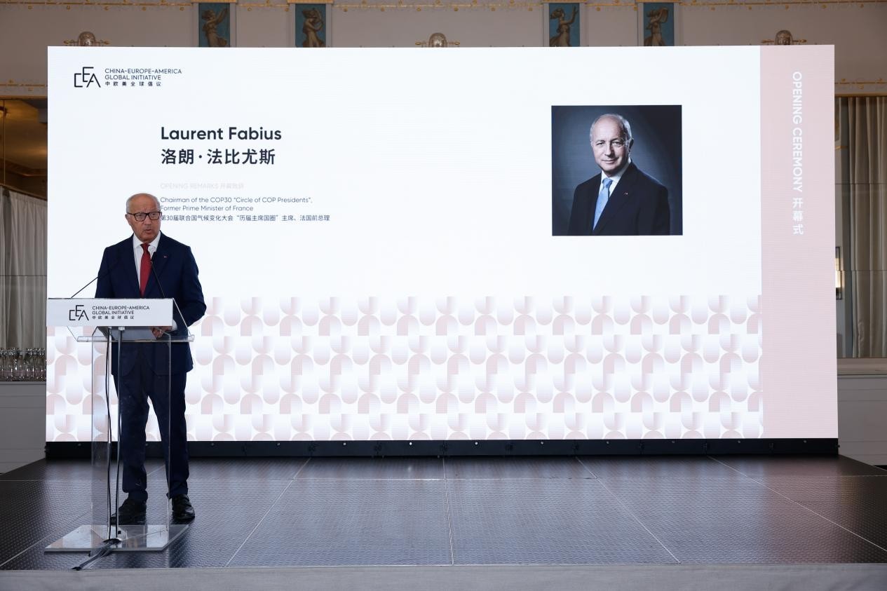 中國駐法國大使館公使陳力、法國前總理洛朗·法比尤斯出席論壇并致辭。中國外文局副局長、當代中國與世界研究院院長于運全,北京市委宣傳部副部長、市政府新聞辦主任余俊生作視頻致辭,中歐美全球倡議發(fā)起人高大偉主持開幕式。