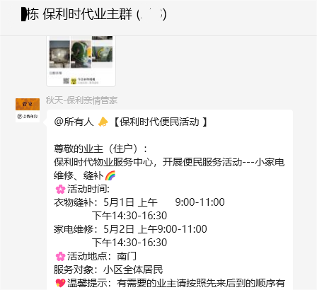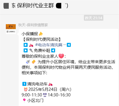 你以為洗電動車就是天花板?保利物業(yè)早把“寵業(yè)主”玩成了連續(xù)??!每月固定開啟“便民服務盲盒日”,免費洗鞋修鞋,暴雨前修傘送傘,還有磨刀大軍組團進小區(qū),以及各種小家電維修等等。