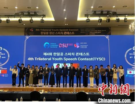 5月23日,第四屆中日韓青年演講比賽在韓國釜山舉行。圖為獲獎(jiǎng)?wù)吆嫌?。中日韓合作秘書處 供圖