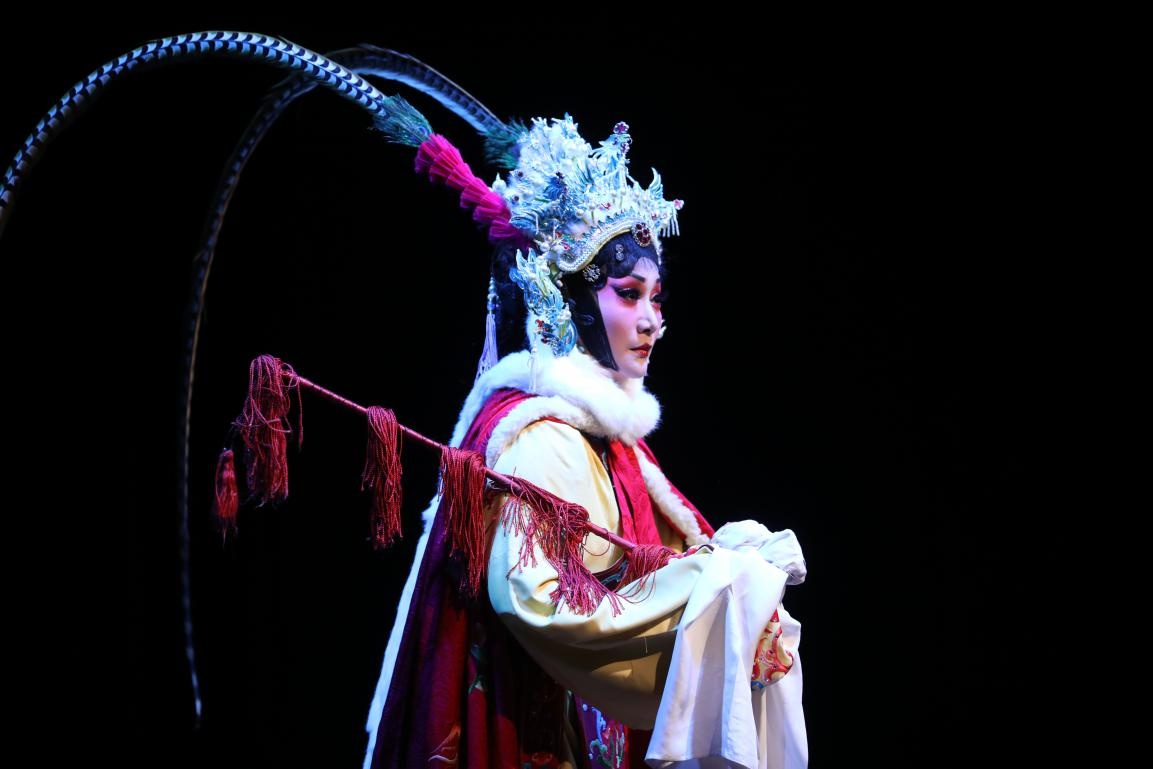 中國(guó)戲劇梅花獎(jiǎng)獲得者惠敏莉身著華美戲服,與一眾易俗社優(yōu)秀演員,用時(shí)而鏗鏘有力、時(shí)而婉轉(zhuǎn)悠揚(yáng)的唱腔、細(xì)膩的表演,飽滿立體的詮釋出中國(guó)傳奇女性王昭君的大愛(ài)情懷。