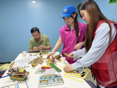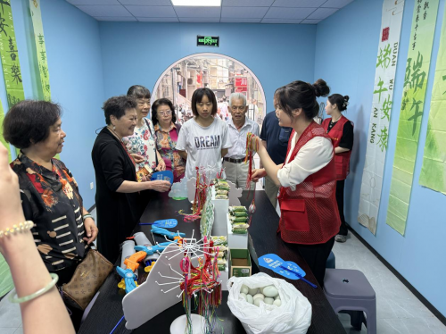 隔壁香囊區(qū)飄來艾草與薄荷的混合香氣,白領(lǐng)小王將碾碎的香料填入布料:“做好送給同事,比買的香包更有心意?!弊罹邉?chuàng)意的當(dāng)屬龍舟制作區(qū)——居民拼貼出造型各異的迷你龍舟,講師順勢講述屈原投江的典故,傳統(tǒng)文化在剪刀與膠水的協(xié)作中悄然傳承。