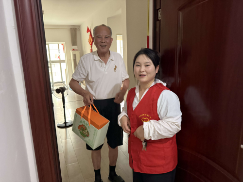 活動(dòng)當(dāng)天,工作人員走訪社區(qū)老人家庭,為他們送上精美的粽子禮盒、咸鴨蛋及節(jié)日問候。每到一戶,工作人員都與老人親切交談,詢問他們的身體狀況和生活需求,叮囑老人注意夏季飲食健康,讓老人們感受到大家庭的溫暖。