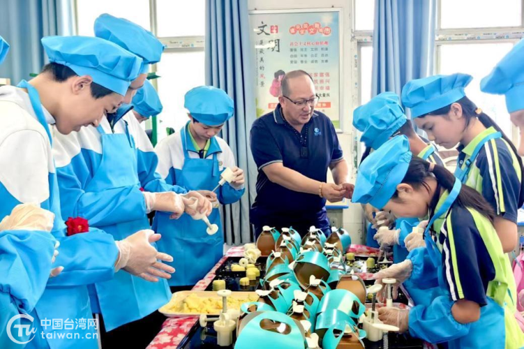 活動(dòng)中,武漢臺協(xié)及臺商代表向?qū)W校捐贈(zèng)電腦設(shè)備、教育資助金及節(jié)日禮物,學(xué)生回贈(zèng)感謝卡。隨后,臺商與30余名學(xué)生分組結(jié)對,共同體驗(yàn)綠豆糕制作、蛋糕裱花等傳統(tǒng)文化DIY項(xiàng)目。