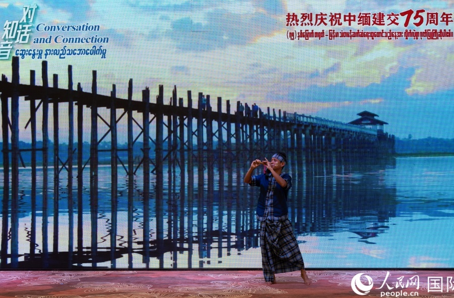緬甸藝術(shù)家在活動(dòng)中演奏傳統(tǒng)樂(lè)器。人民網(wǎng) 記者謝佳君攝