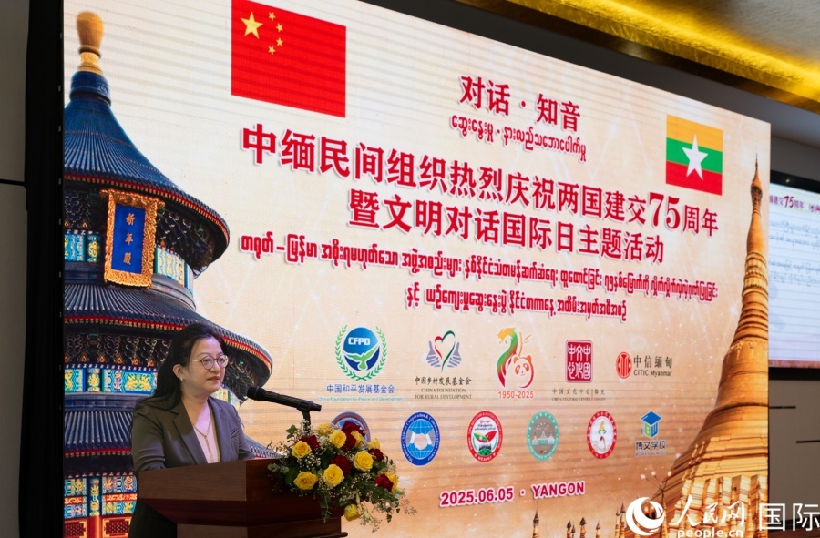 人民網(wǎng)仰光6月5日電 (記者謝佳君)6月5日,中國(guó)和平發(fā)展基金會(huì)、仰光中國(guó)文化中心在仰光共同舉辦慶祝中緬建交75周年暨文明對(duì)話國(guó)際日主題活動(dòng),中國(guó)駐緬甸大使馬珈及中緬民間組織和友好人士代表等200余人出席。