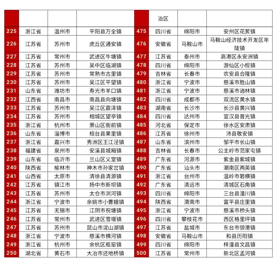 表1 2025鎮(zhèn)域經(jīng)濟(jì)全國(guó)500強(qiáng)