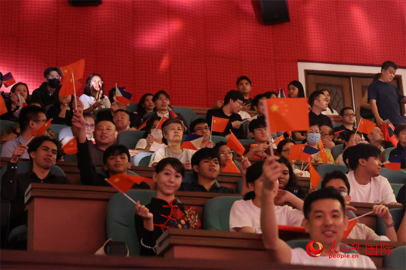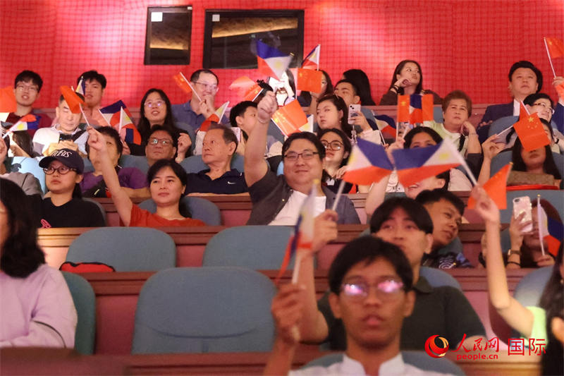 現(xiàn)場觀眾揮舞兩國國旗,表達(dá)兩國人民對中菲友好的誠摯愿望和殷切期望。人民網(wǎng) 記者樊帆攝